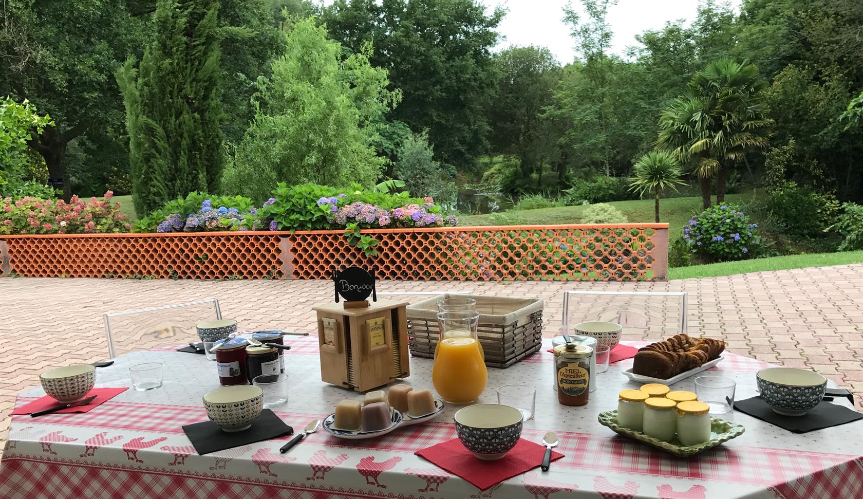 Le petit déjeuner est servi en terrasse ou dans la chambre.